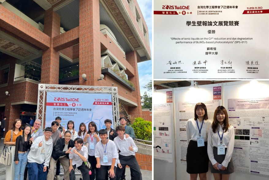 透過此次年會參與,不僅提升學生的研究發表能力,也深化對化工相關議題的理解,充分展現逢甲化工系在教學與研究上的紮實成果,並持續朝向培育具競爭力之化工專業人才邁進。